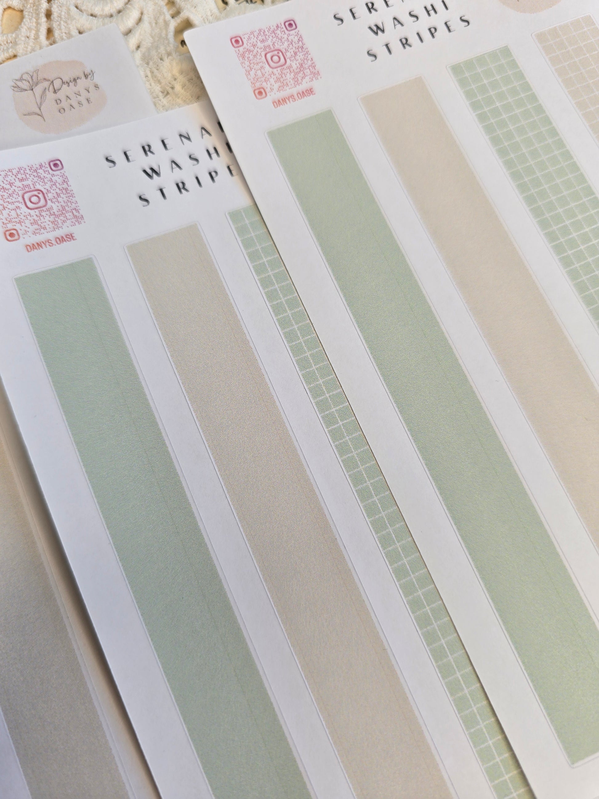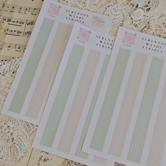 Delicate faux washi sticker strips – ideal for journaling, scrapbooking, or happy mail. The strips can be used like washi tape, but are designed as sticker sheets – no tearing required.