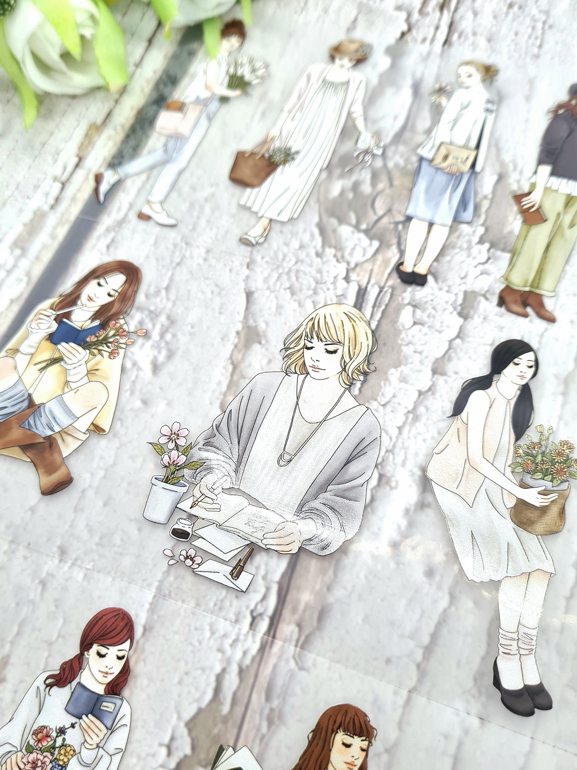PET Tape “Spring Letters” – Café Analog × Windry R. – Spring motifs with girls & flowers for journals, collages & scrapbooking