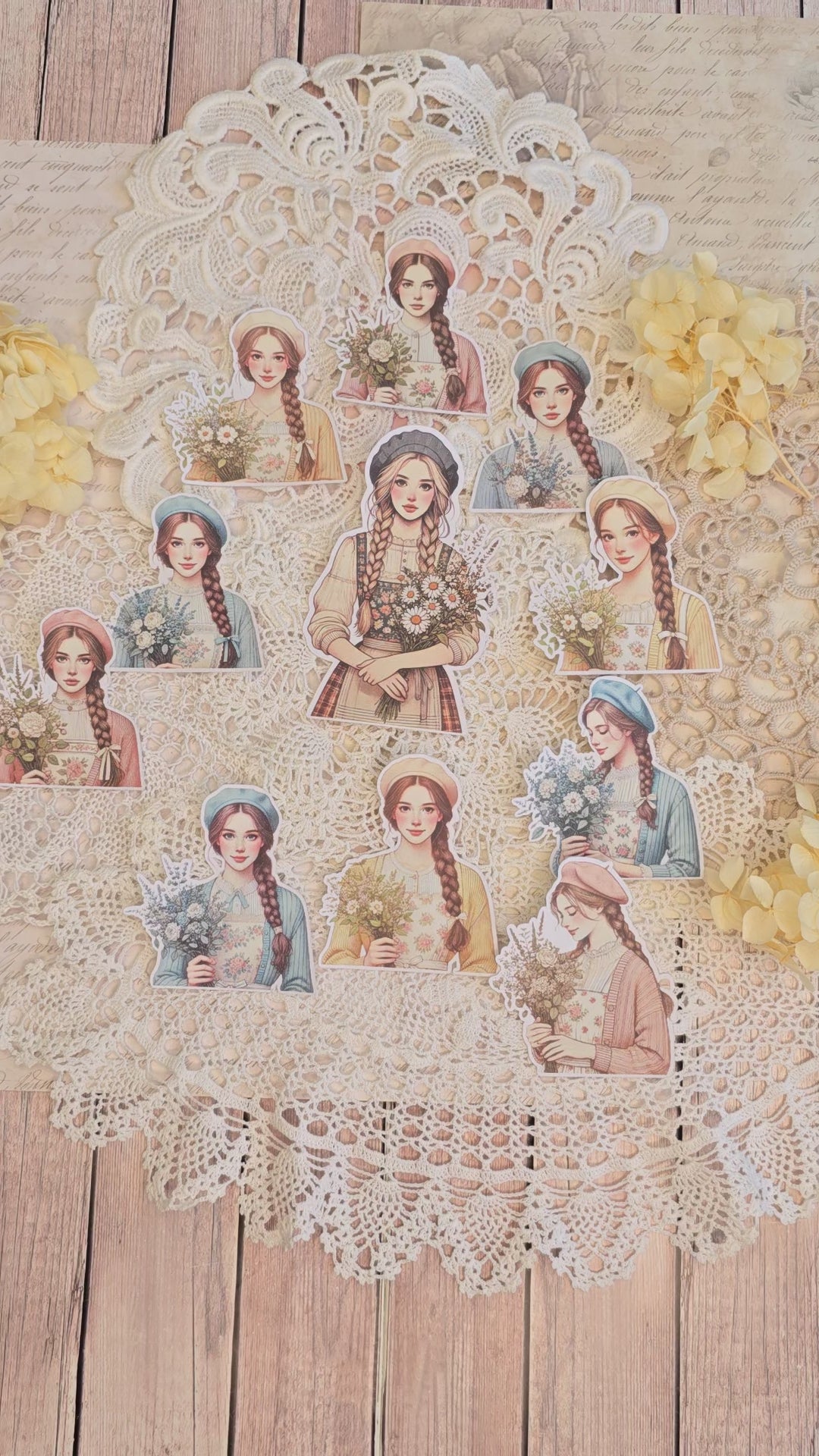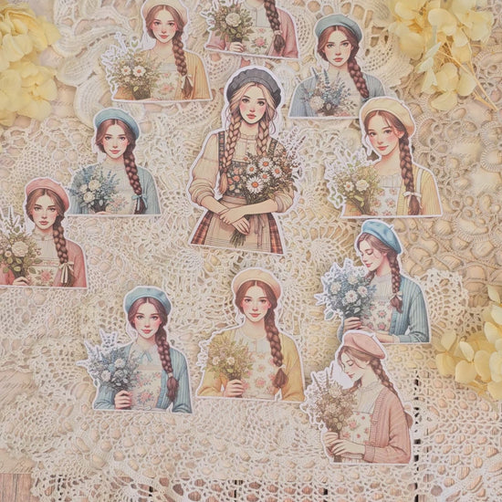 Verleihe deinem Papierprojekt eine feminine Boho-Note – mit diesen zarten Mädchenstickern im Vintage-Stil.