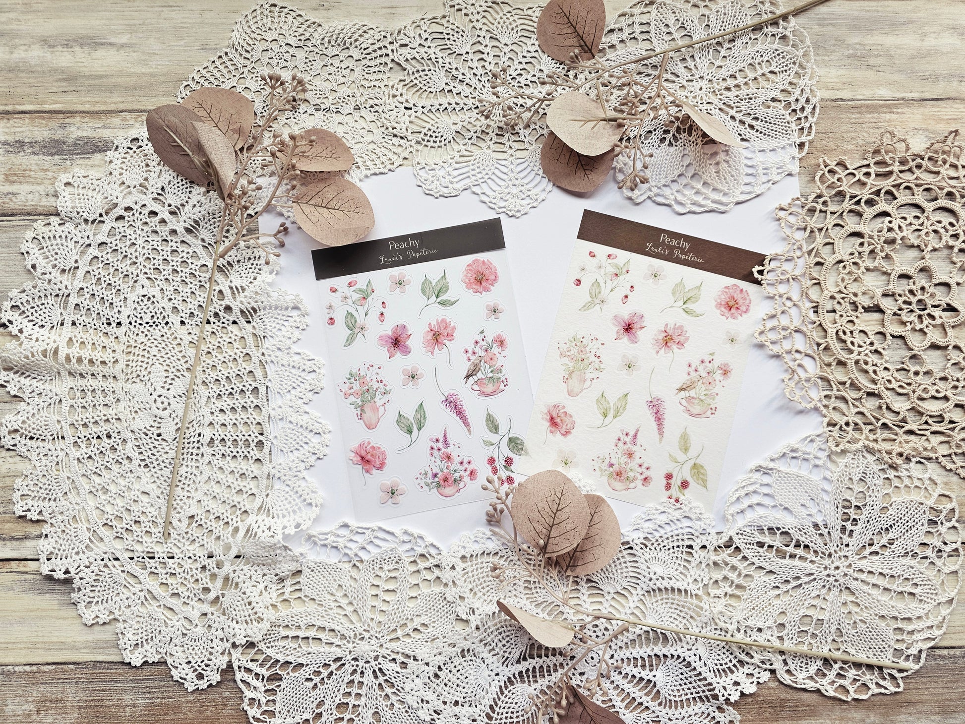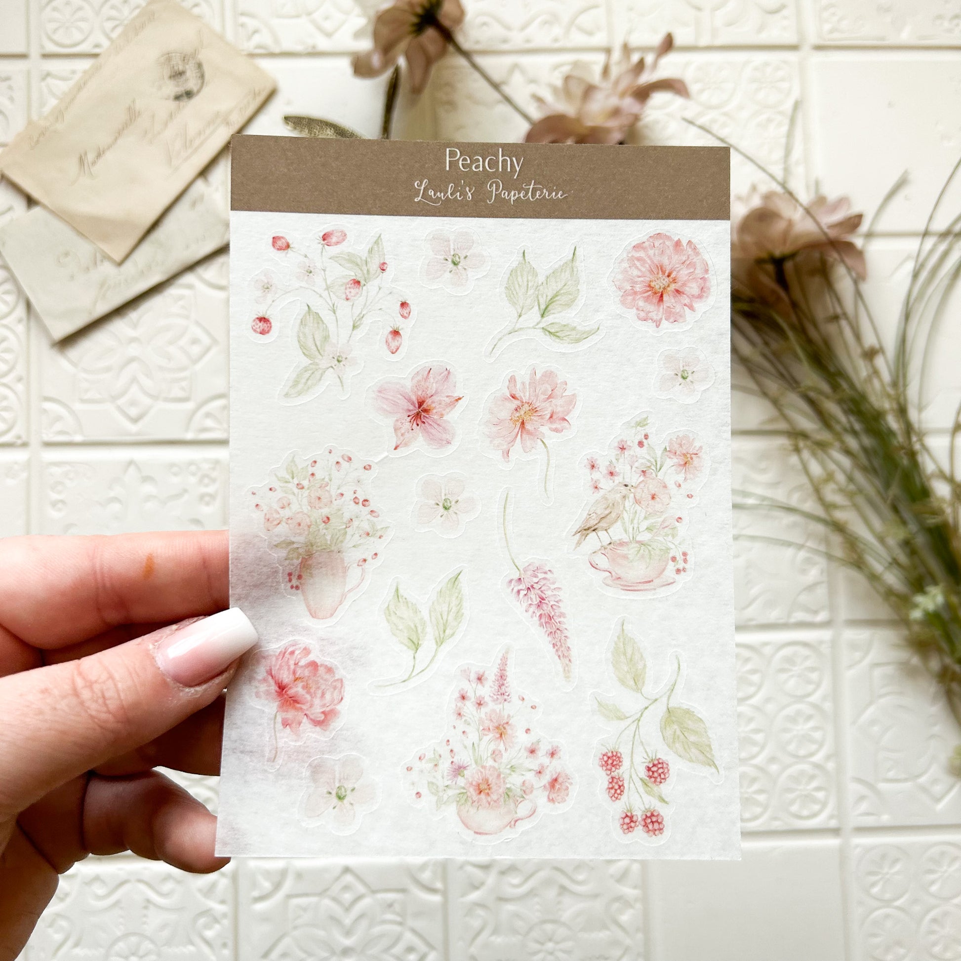 Die „Peachy“ Sticker von Lauli's Papeterie zeigen zarte Blumen, Blätter, Beeren und dekorative Details in pastelligen Rosatönen. Ideal für Journals, Bullet Journals, Planer oder kreative Collagen – diese Sticker bringen einen Hauch Romantik und feminine Eleganz auf dein Papier.