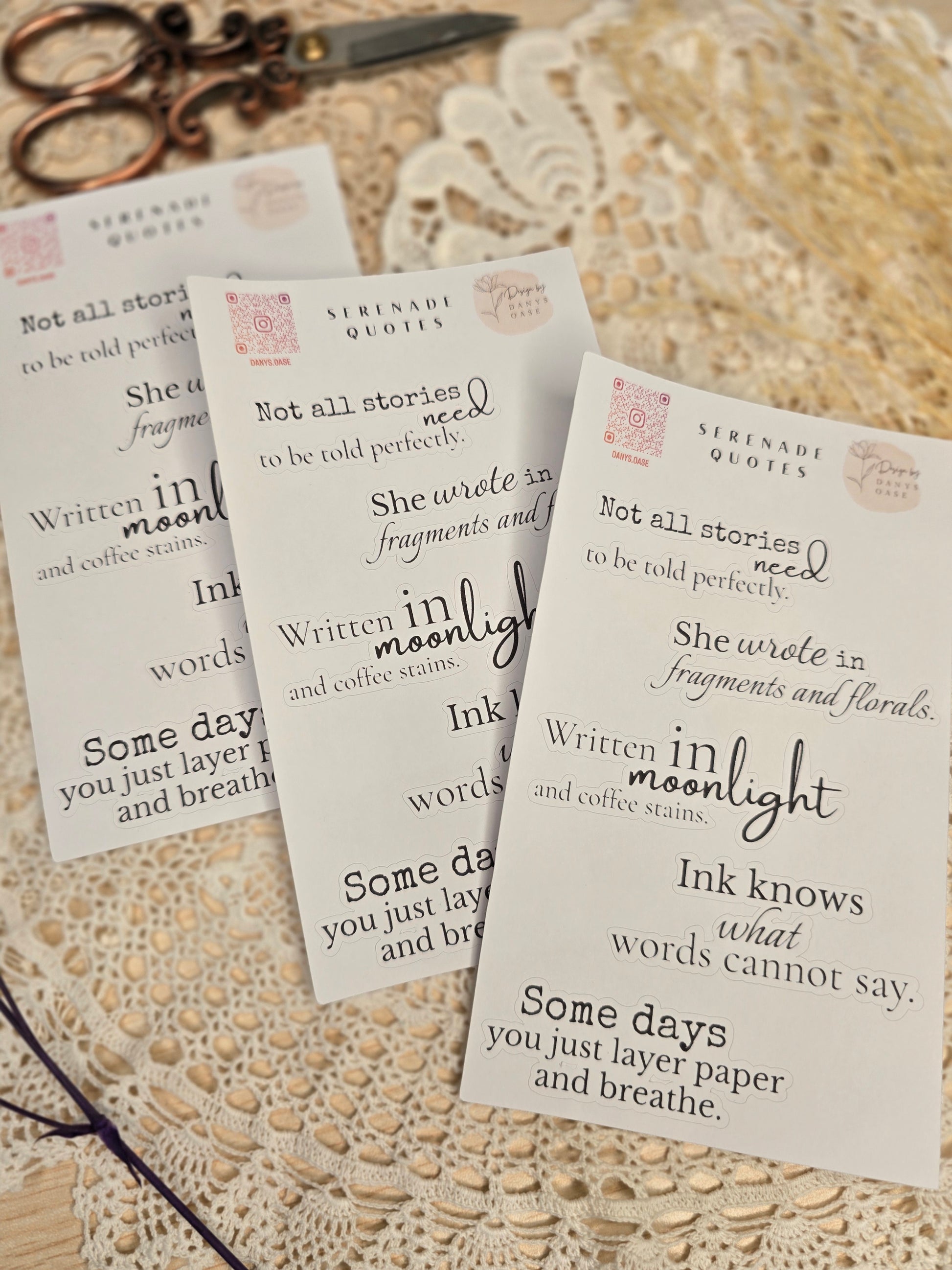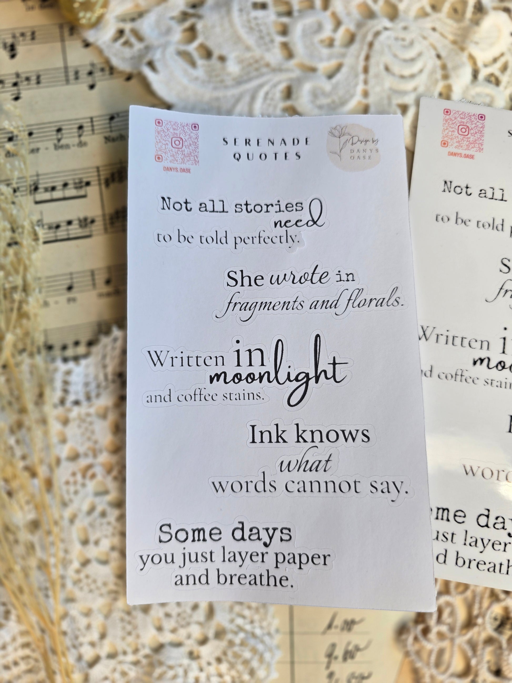 Serenade Quotes – 5 poetische Zitate als Sticker für Journaling, Collage & kreative Briefe ✒️