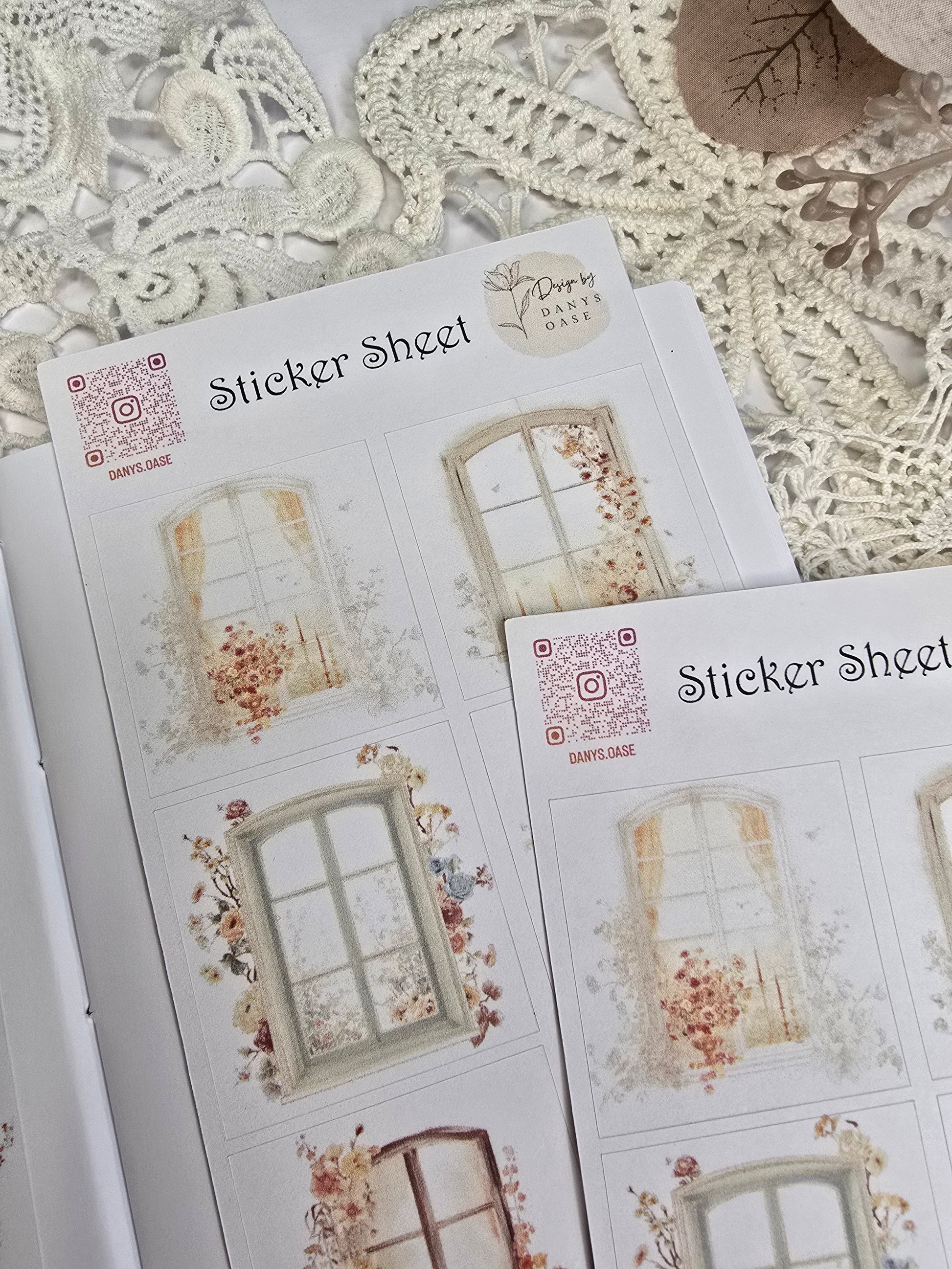 Fensterblicke – Zarte Aquarell-Sticker für Journaling, Collagen & Papeterie 🌿