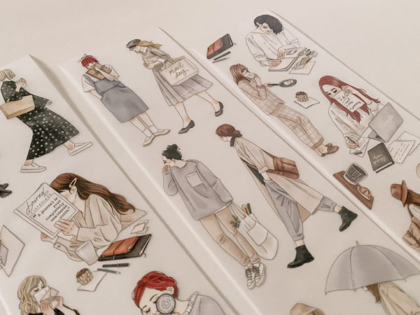 Das „Hello!+“ PET Tape ist eine exklusive Zusammenarbeit von Listeninda × Windry Ramadhina. Stilvolle Mädchenmotive kombiniert mit kleinen Alltagsmomenten und Papeterie-Elementen in sanften Farben verleihen Journals, Scrapbooks und Collagen eine ruhige, kreative Ästhetik.