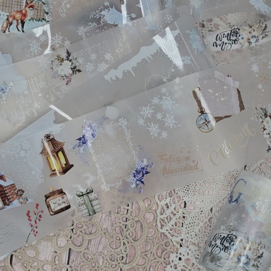 Bring winterliche Magie auf Papier! „Winter’s Embrace“ vereint zarte Schneeflocken, glitzernde Eiskristalle, florale Akzente, nostalgische Illustrationen und winterliche Elemente auf transparentem PET – perfekt für Journaling, Scrapbooking, festliche Karten oder Geschenkverpackungen.