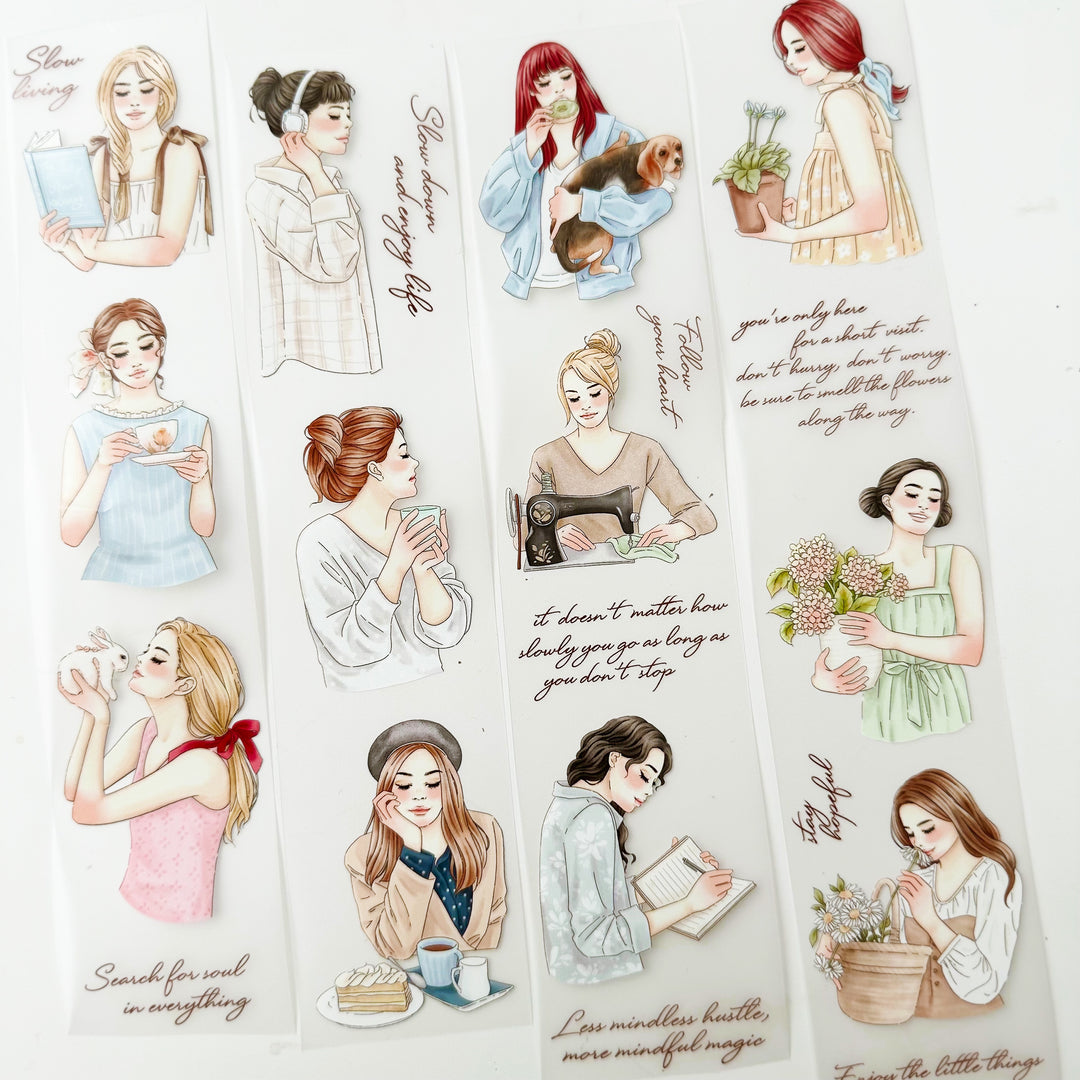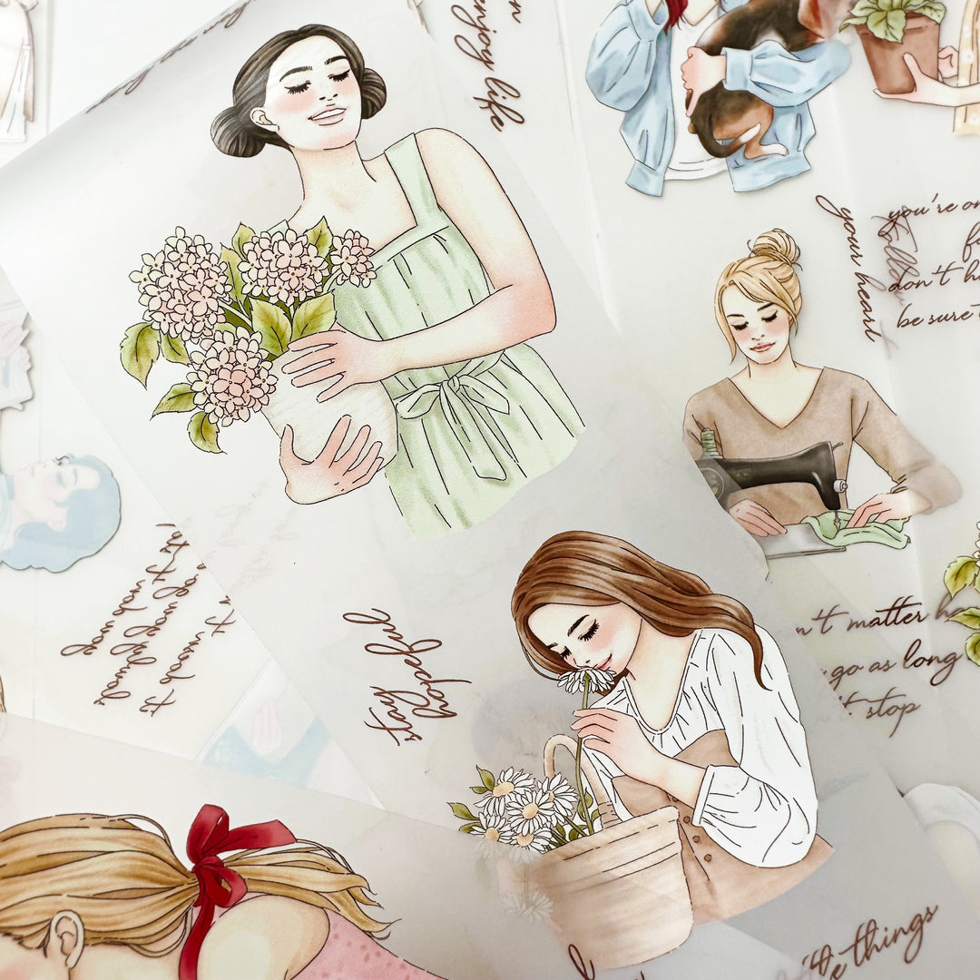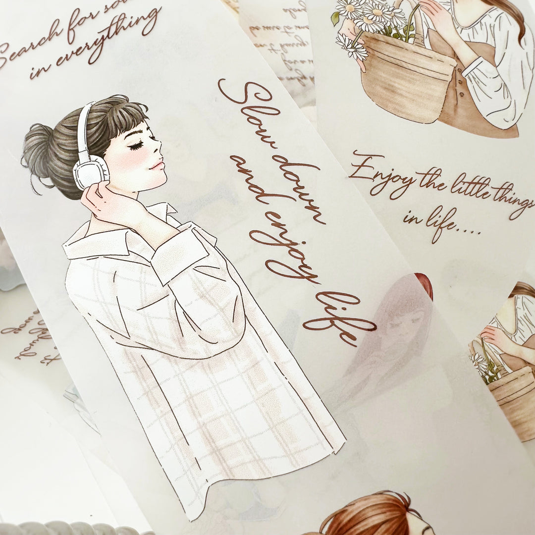 Das „Mindful Magic“ PET Tape ist eine inspirierende Zusammenarbeit von Journal Pages × Windry Ramadhina. Liebevoll gestaltete Mädchenmotive bringen Ruhe, Fokus und einen besonderen Charme in deine Journals, Scrapbooks und Collagen.