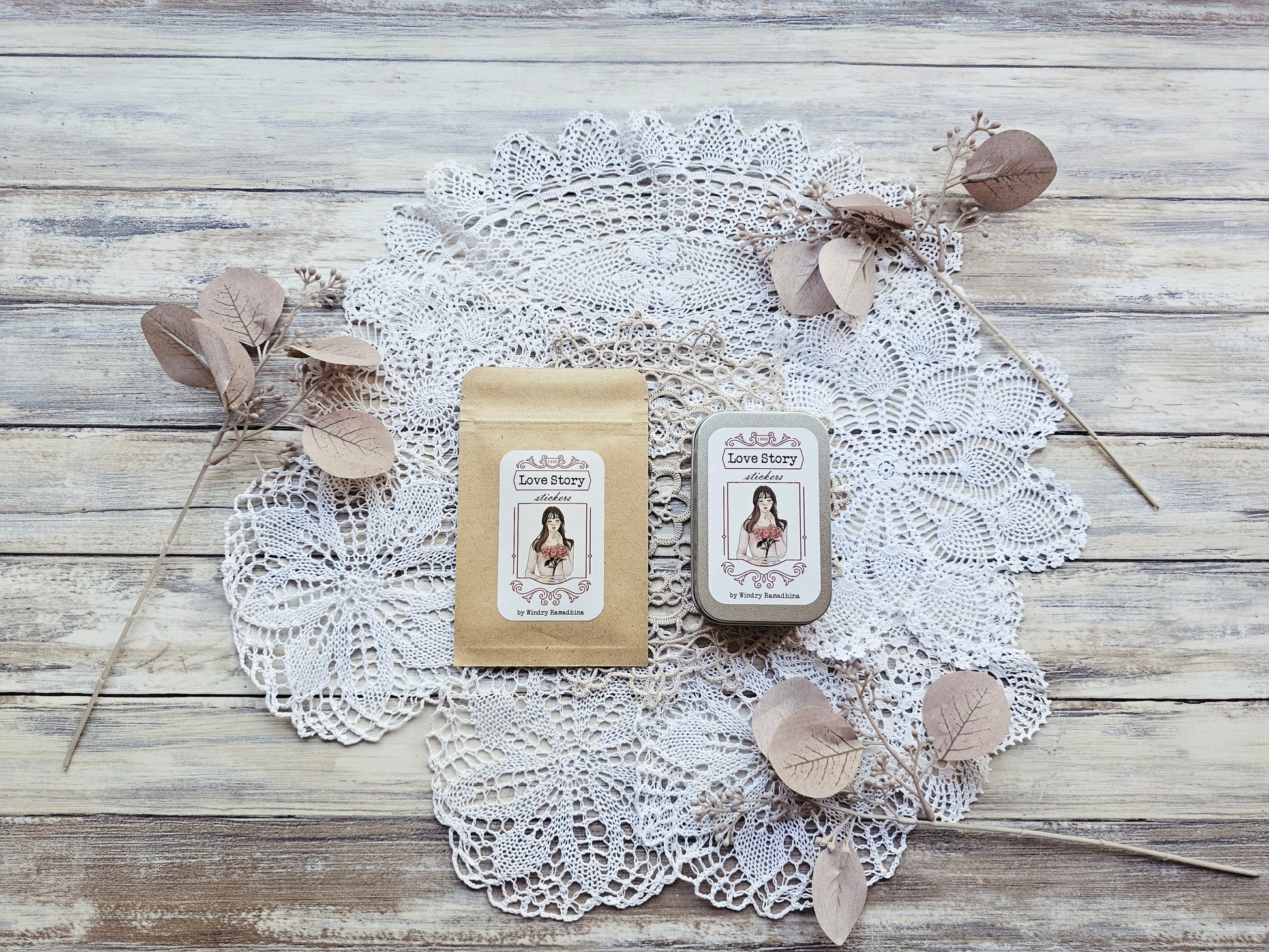 Die Kollektion „Love Story“ von Windry Ramadhina umfasst 20 hochwertige Papiersticker mit sanften Aquarell-Illustrationen. Zarte Figuren und poetische Details verleihen deinen Journals, Scrapbooks und Collagen eine emotionale, romantische Note.