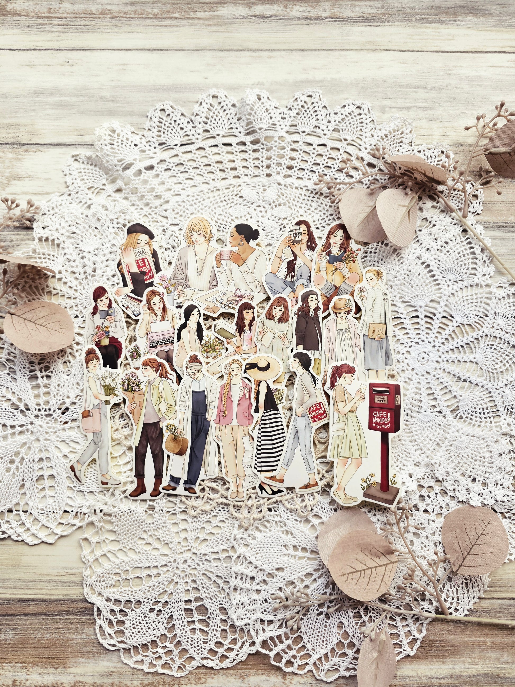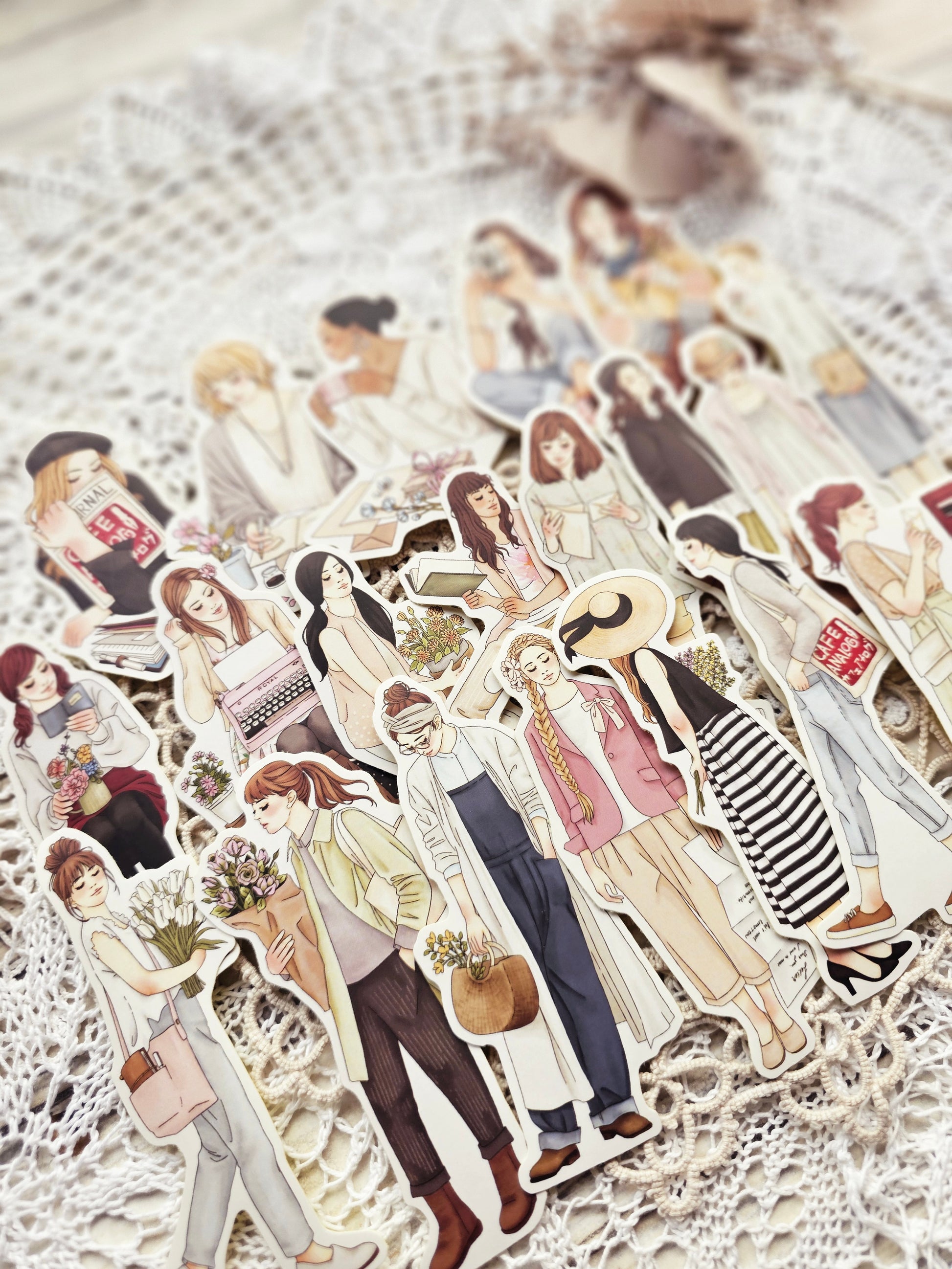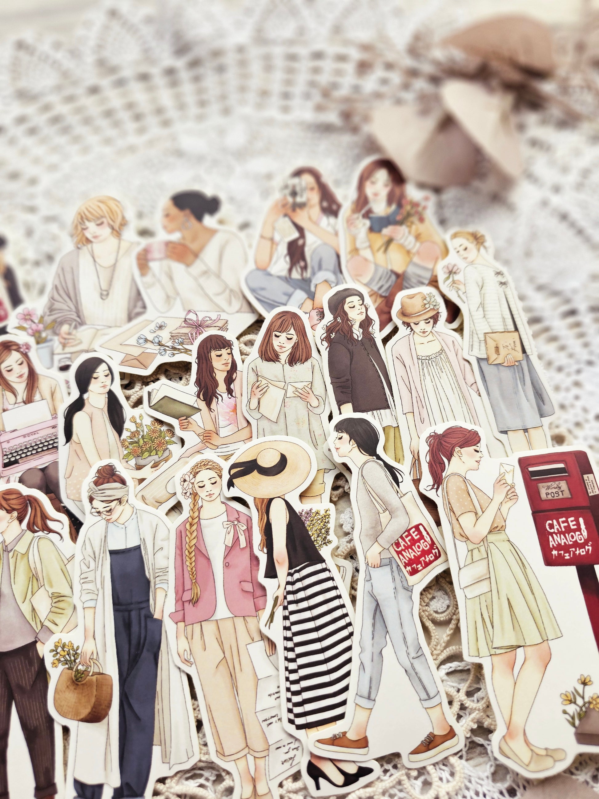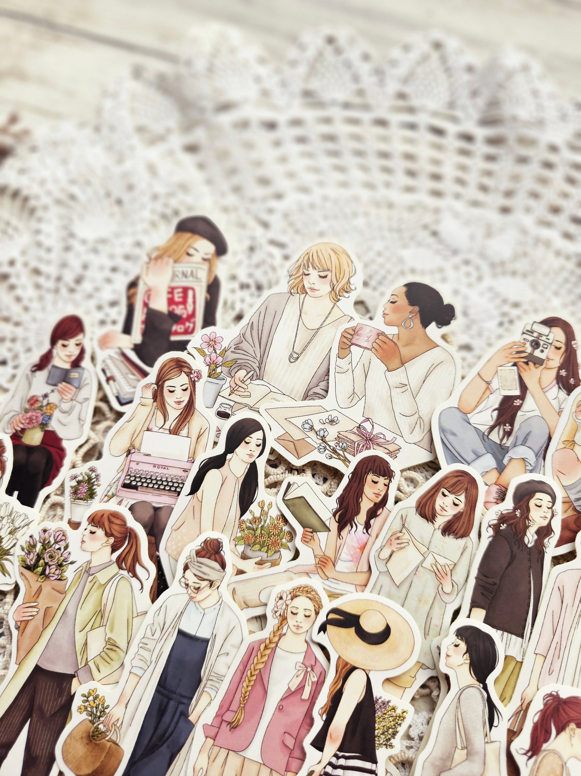 20 Sticker mit romantischen Mädchenmotiven im Vintage-Stil