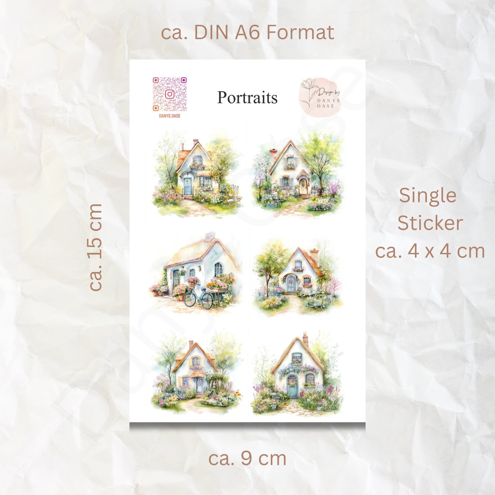 Cottage Portraits II – 6 Aquarell-Sticker mit Landhausmotiven