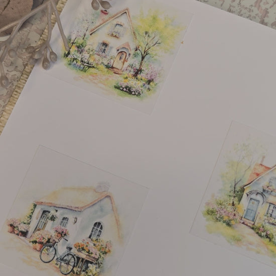 Dieses liebevoll illustrierte Sticker Set bringt verträumte Cottages im Aquarellstil auf dein Papier. Die sanften Farben und detailreichen Szenen eignen sich wunderbar für Journals, Scrapbooks, Collagen und Geschenkverpackungen mit nostalgischem Flair.