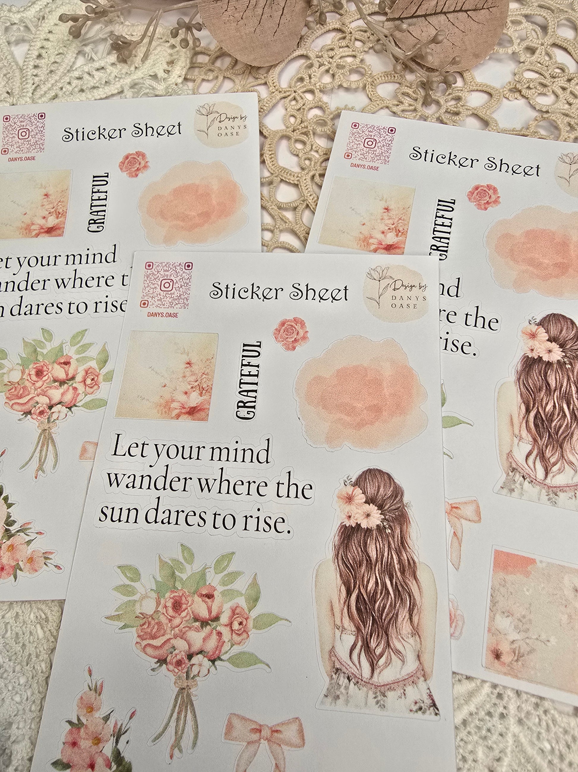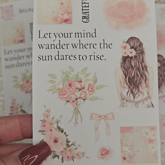 Boho Sticker Set – 11 Pastellmotive mit Mädchen, Blumen & Sprüchen