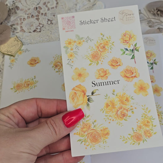 Dieses liebevoll gestaltete Sticker Set bringt floralen Sommerzauber auf dein Papier: Gelbe Rosen, Wildblumen und zarte Sommerkränze im Vintage-Aquarellstil verleihen Journals, Collagen oder Scrapbooks einen sonnigen Akzent – leicht, natürlich & charmant.