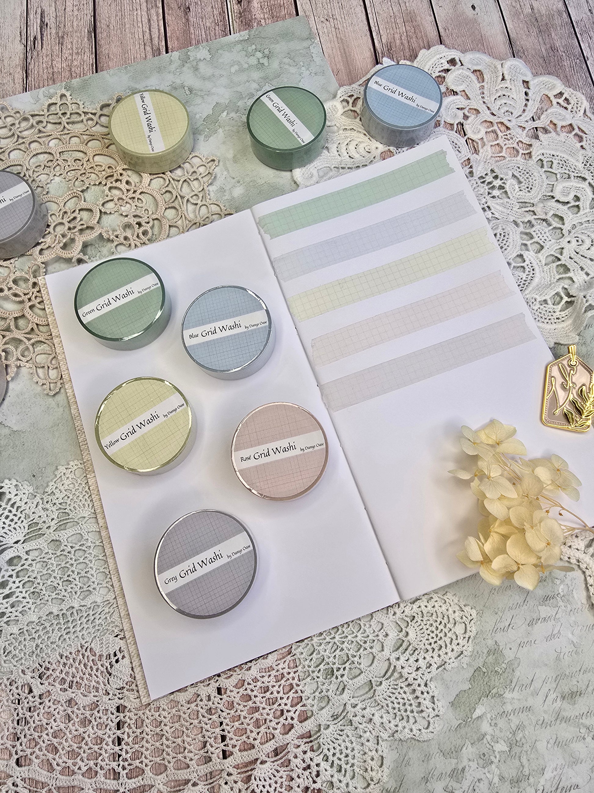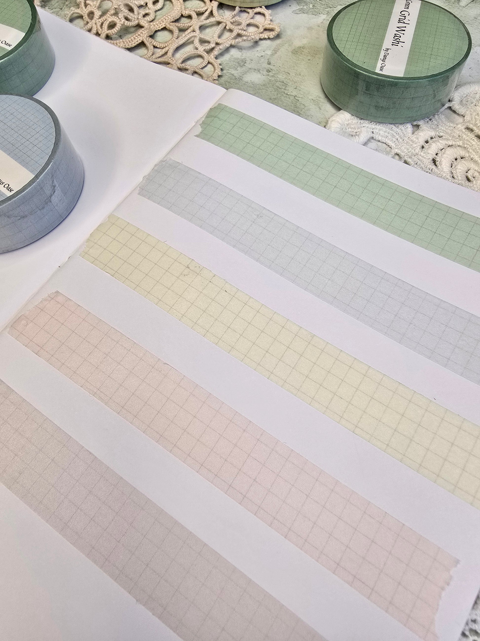Washi Tape „Classic Grid“ – 15 mm x 10 m – in fünf zarten Pastellfarben für dein Journal ✨📚